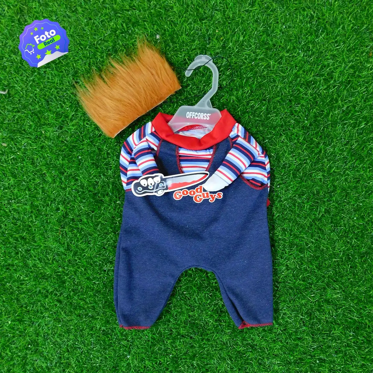Tu perro orgullosamente vestido como Chucky,sin molestias, moviéndose con naturalidad, disfrutando la fiesta y tú tranquil@ de que está bien.