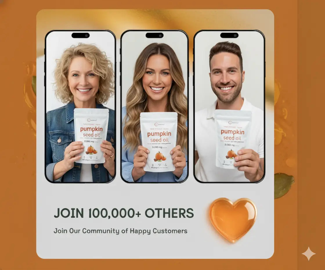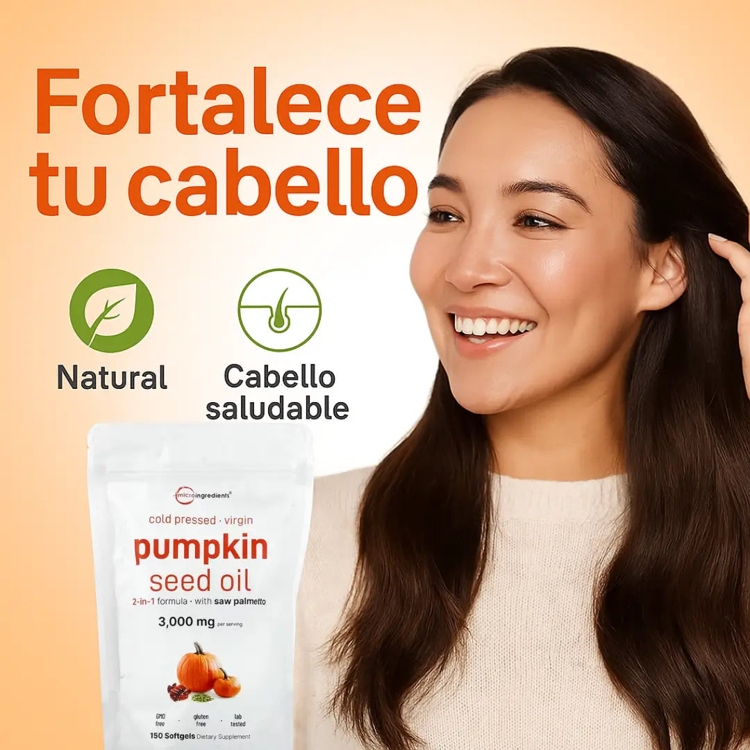 Contiene por porción: 3.000 mg de aceite de semilla de calabaza + 300 mg de extracto de saw palmetto
