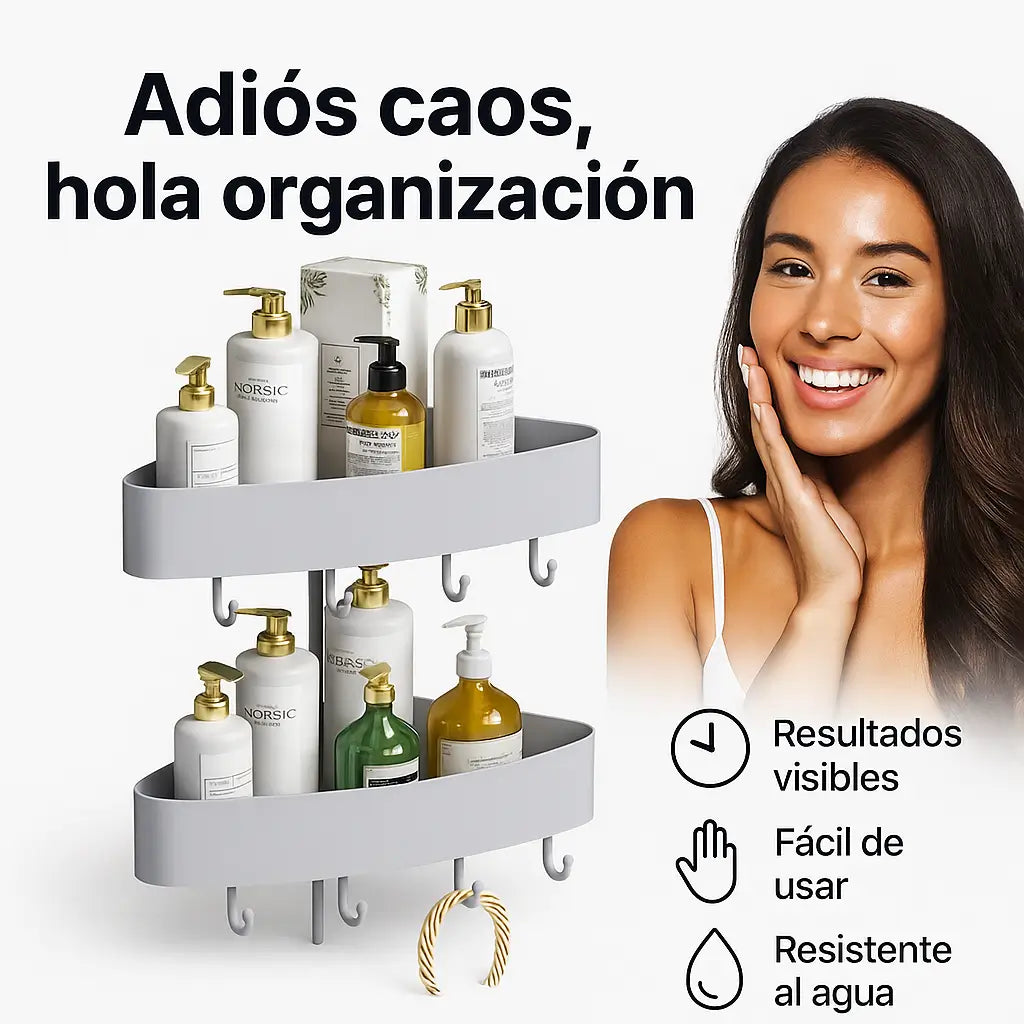 Soporta gran peso, ideal para botellas grandes de shampoo o cremas.