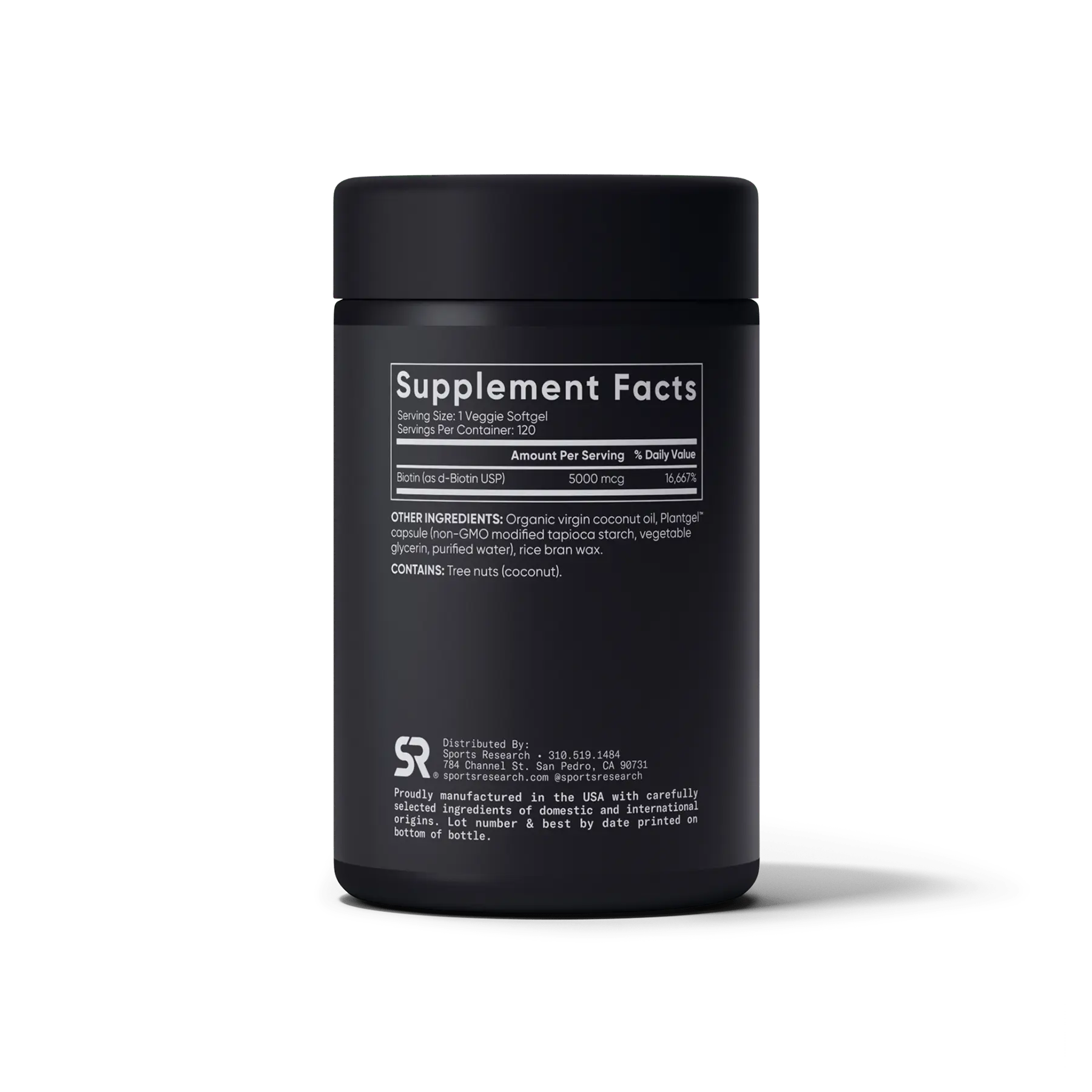Ingredientes clave: Biotina , aceite de coco virgen orgánico, cápsula Plantgel (fécula de tapioca, glicerina vegetal, agua purificada)