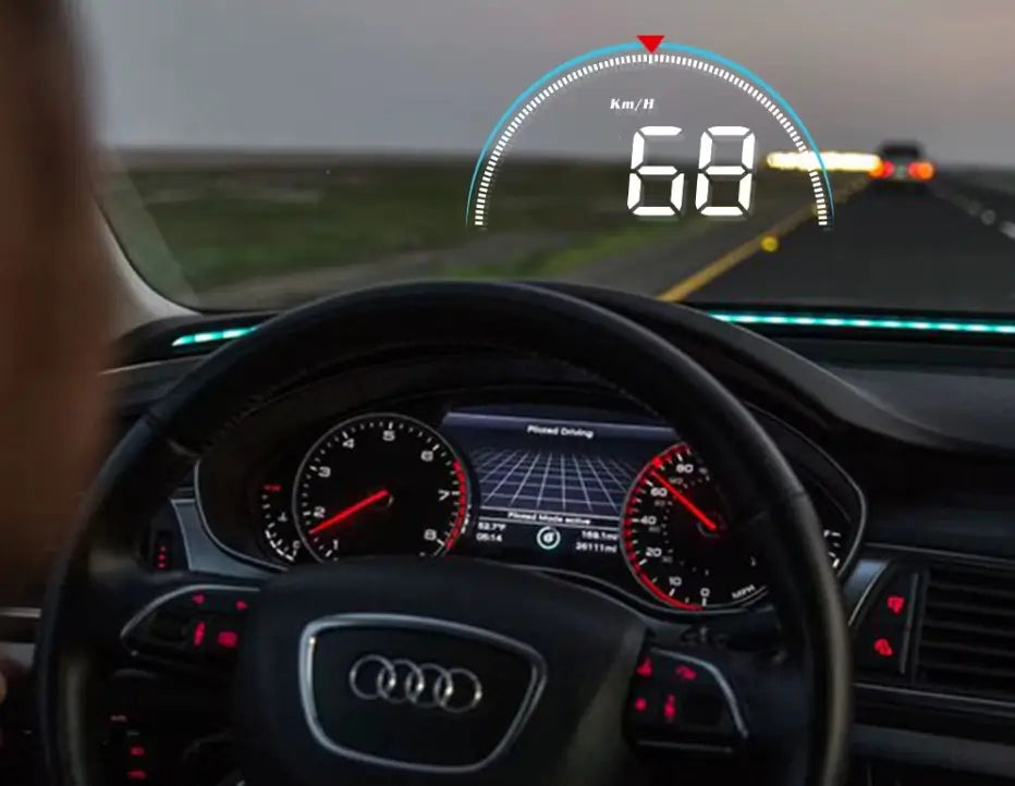 Visual futurista: Proyecta la velocidad y datos clave directo al parabrisas, como los autos premium.